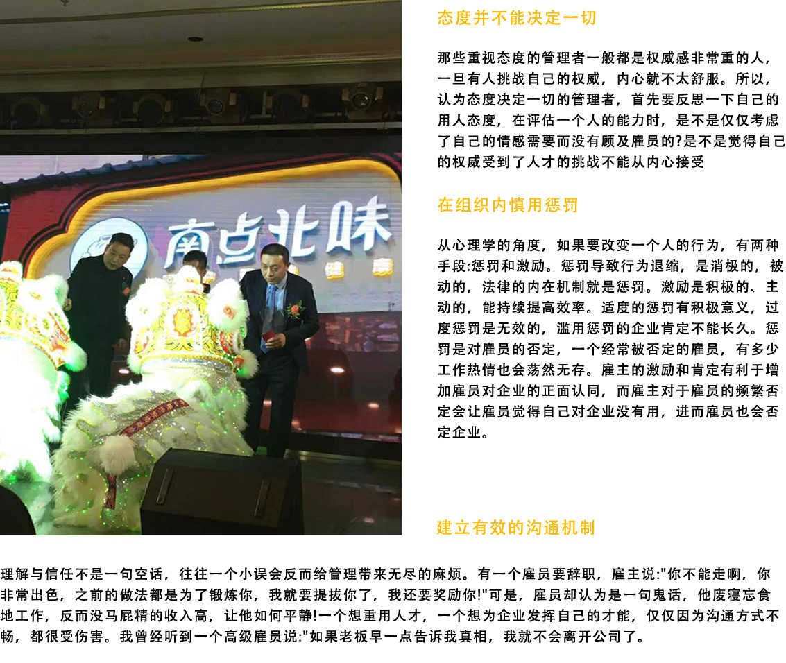 團(tuán)隊(duì)精神的形成并不要求團(tuán)隊(duì)成員犧牲自我,相反,揮灑個性、表現(xiàn)特長保證了成員共同完成任務(wù)目標(biāo)而明確的協(xié)作意愿和協(xié)作方式則產(chǎn)生了真正的內(nèi)心動力。團(tuán)隊(duì)精神是組織文化的一部分,良好的管理可以通過合適的組織形態(tài)將每個人安排至合適的崗位,充分發(fā)揮集體的潛能如果沒有正確的管理文化,沒有良好的從業(yè)心態(tài)和奉獻(xiàn)精神,就不會有團(tuán)隊(duì)精神。